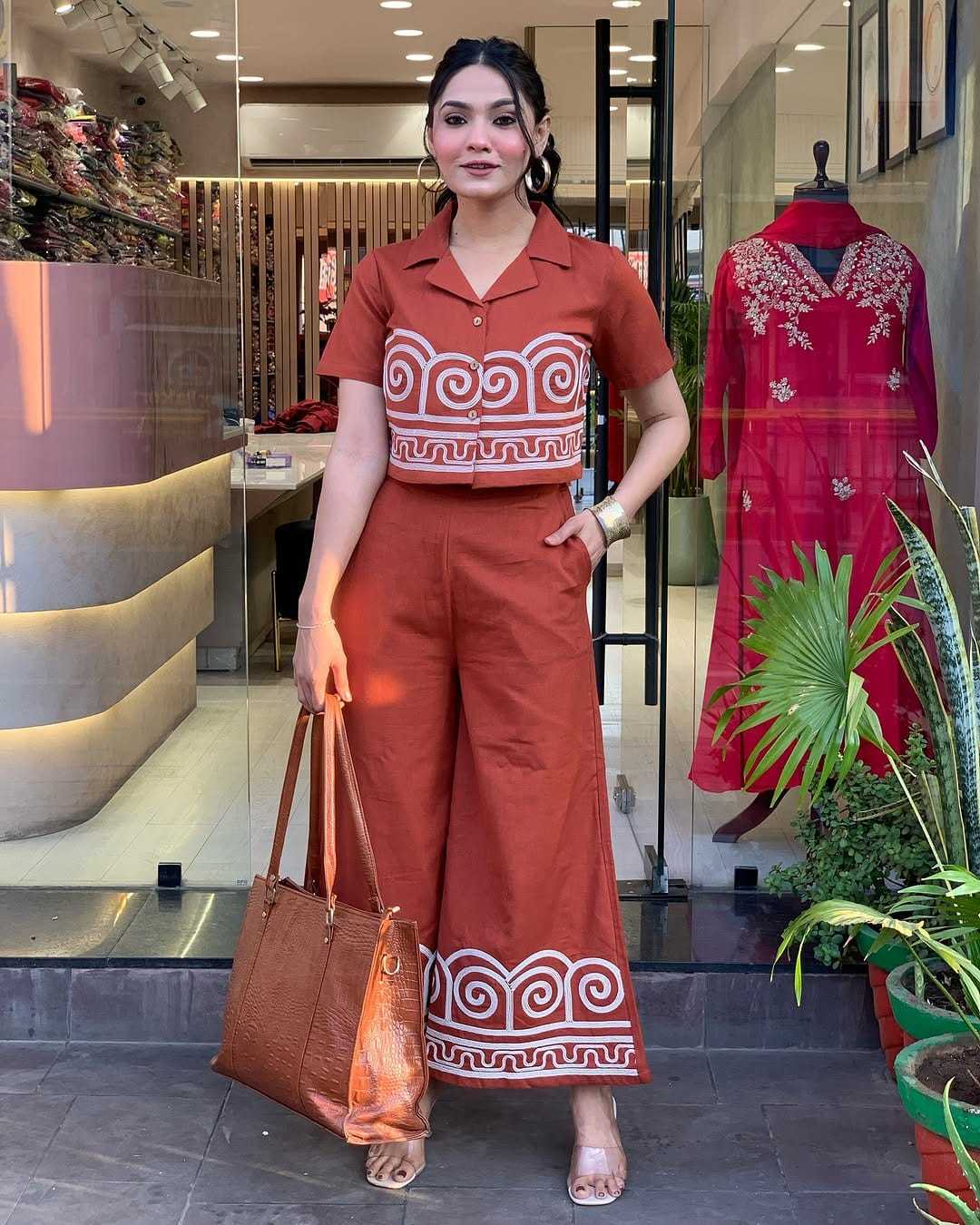 Orange Color EmbroideOrange Cotton Co-Ord Set For Women’s and Girls Size-L